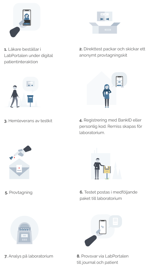 • Patienten får automatiskt ett testkit hemskickat via Direkttest.